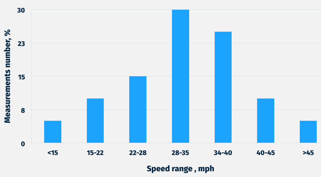 • Vehicle speeds in traffic flow distributed normally as shown on the example on the graph.
