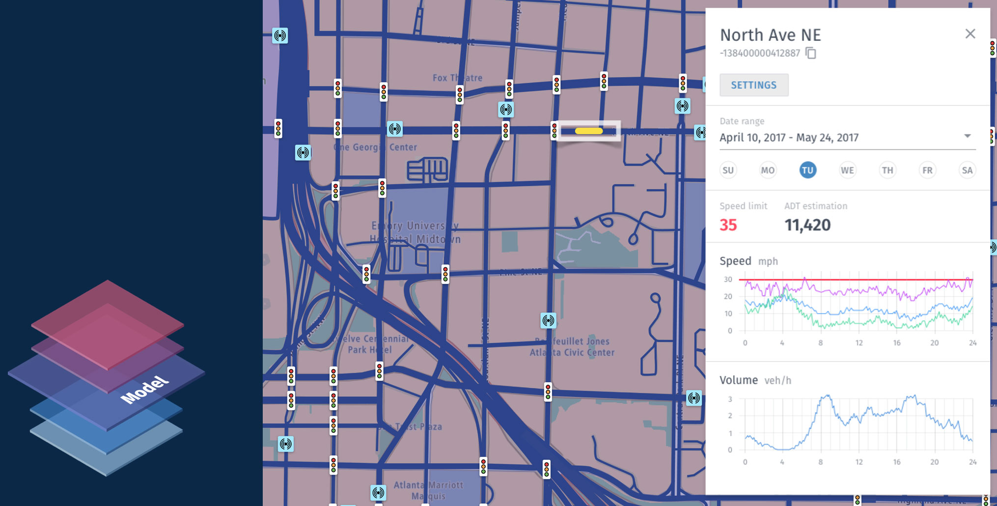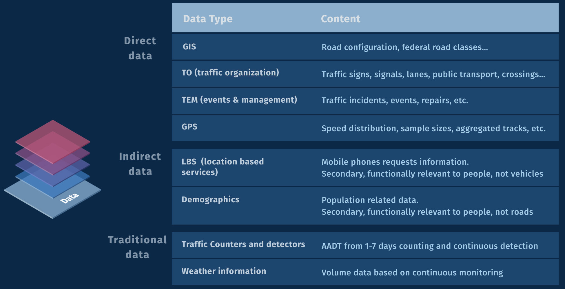 For the processing of multi-source data, Ticon platform uses several Artificial Intelligence Modules, which describe road network, means of traffic control and vehicles behavior. Data processing by Artificial Intelligence Modules allows accurate estimation of all vital parameters of the traffic flow. These includes true volume estimation, with the use of several complimenting and cross-verified methods, and among them is the utilization of deterministic speed-density relationship in dynamic form.